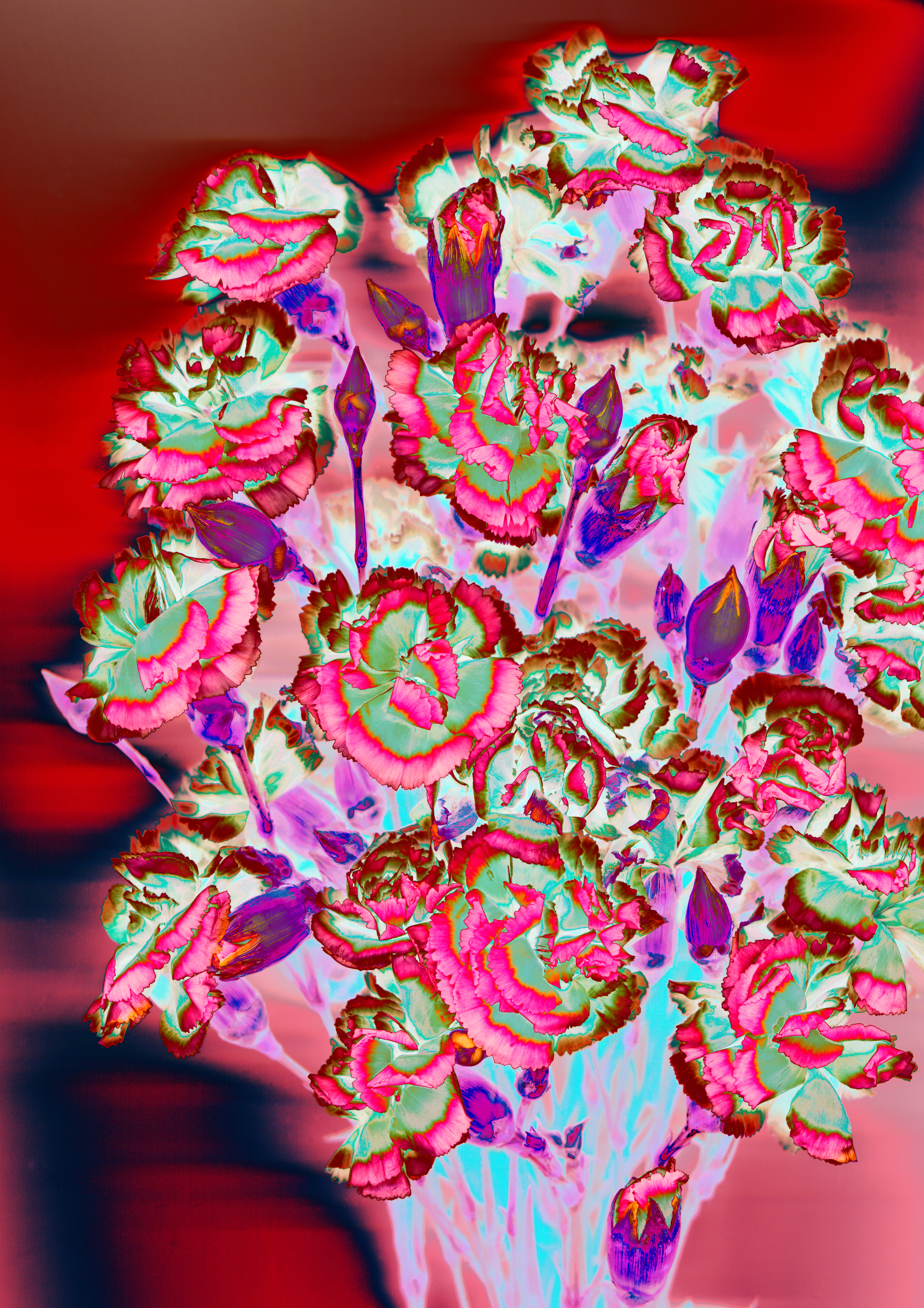 das Motiv so verfremdet, dass man nur in Teilen die Blumen erkennen kann und das Bild